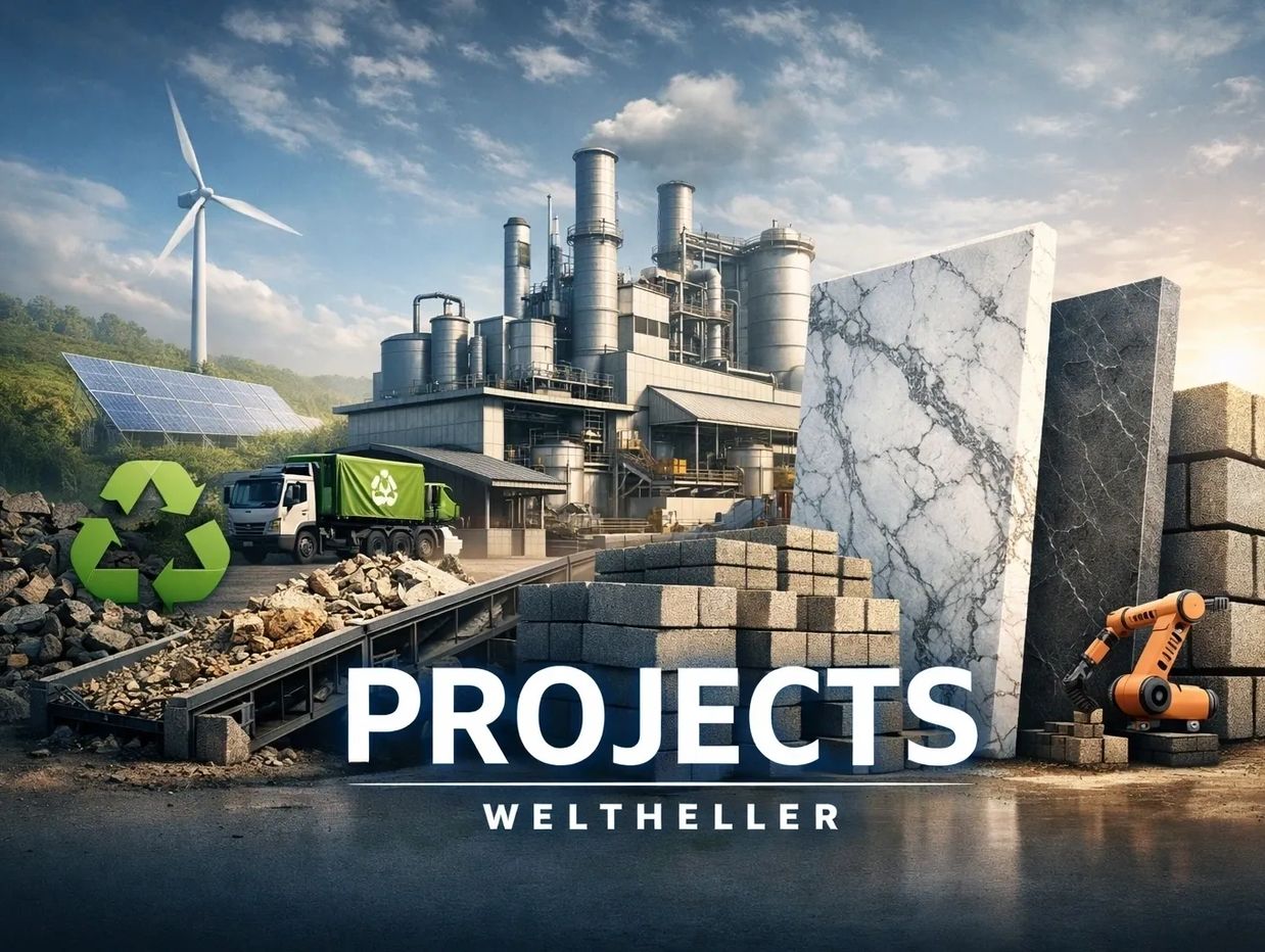 This project direction focuses on technologies that transform construction waste and mining residues into premium architectural slabs. These solutions support circular economy principles by reducing landfill, lowering raw material extraction, and creating new industrial value chains.